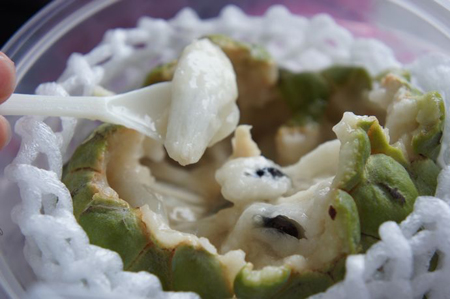 釋迦一定要熟軟才能吃。現在臺灣有出產牛奶釋迦果,聽說味道相當不錯。